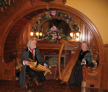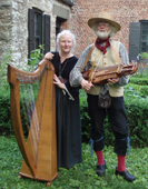 "Colonial Conviviality" Sondra & John Bromka with harp and nyckelharpa at Senate House, Albany [press image] |