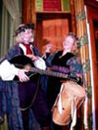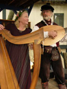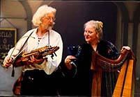 "Legend of Tristan & Iseult" Sondra & John Bromka at Faire, telling they acclaimed version of the Medieval Celtic tale, accompanied by harp and nyckelharpa [press image] |